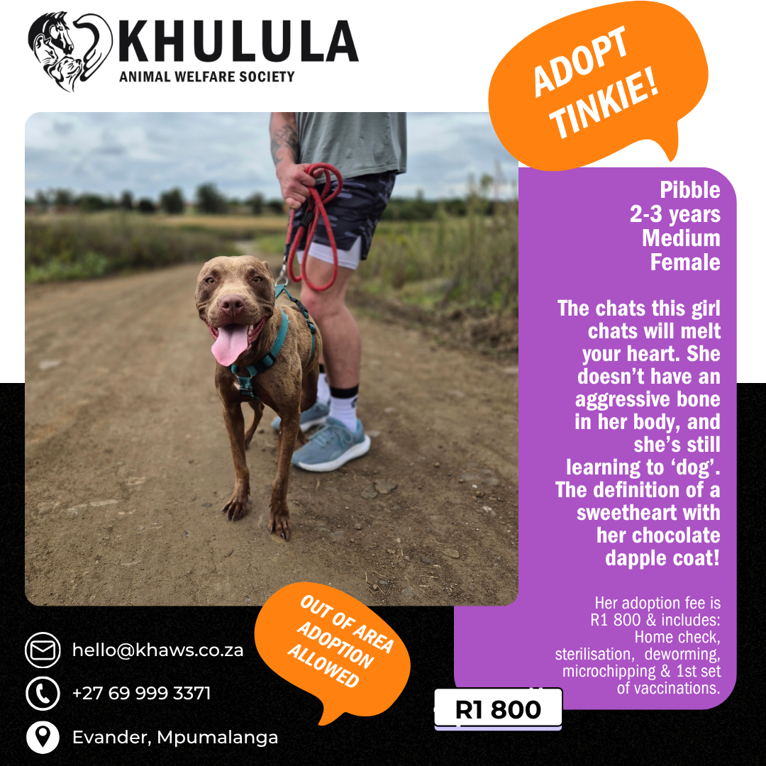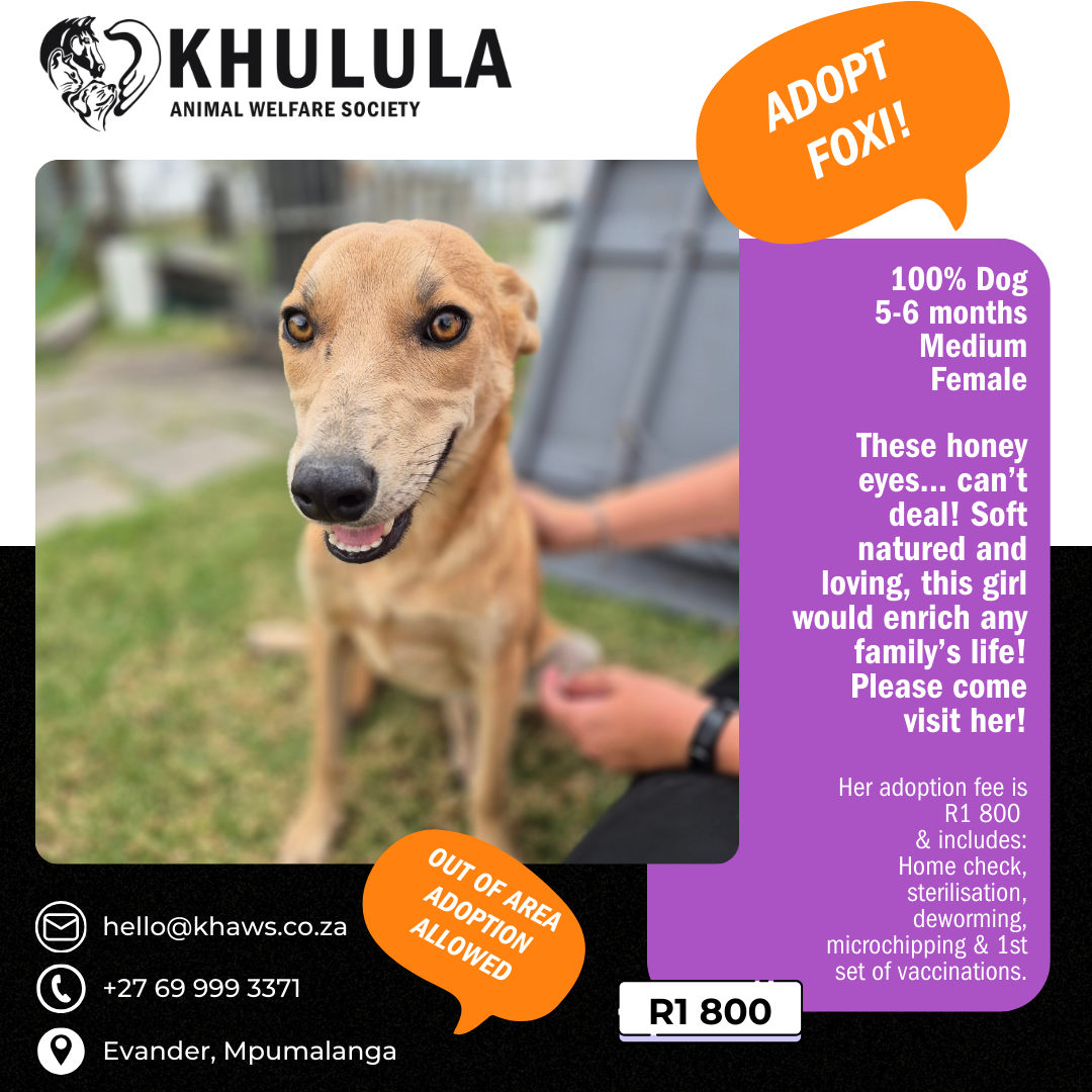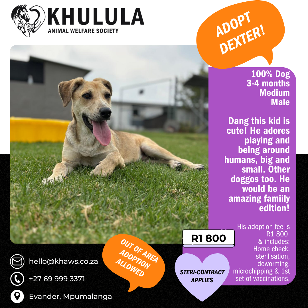 The following dogs are currently residents at Khulula Animal Welfare Society and are looking for their forever home.  Please contact us if you are interested in adopting.  Please be advised that home checks will be done, and 'meet and greets' must be held if you have other dogs.