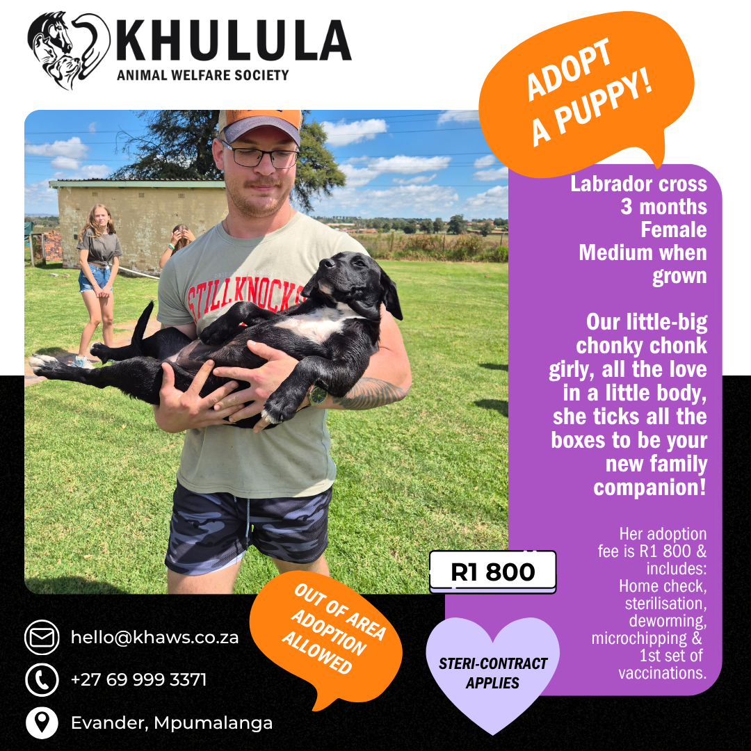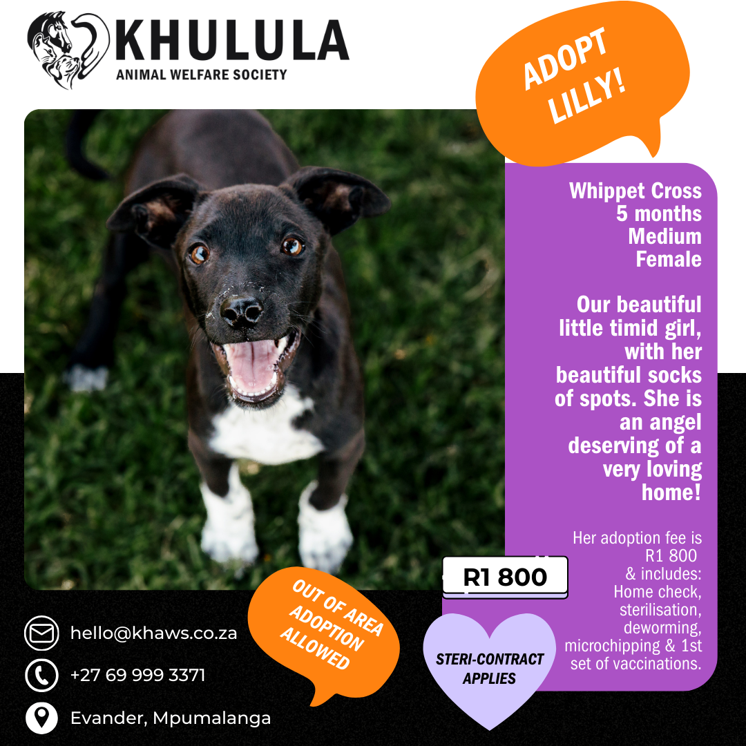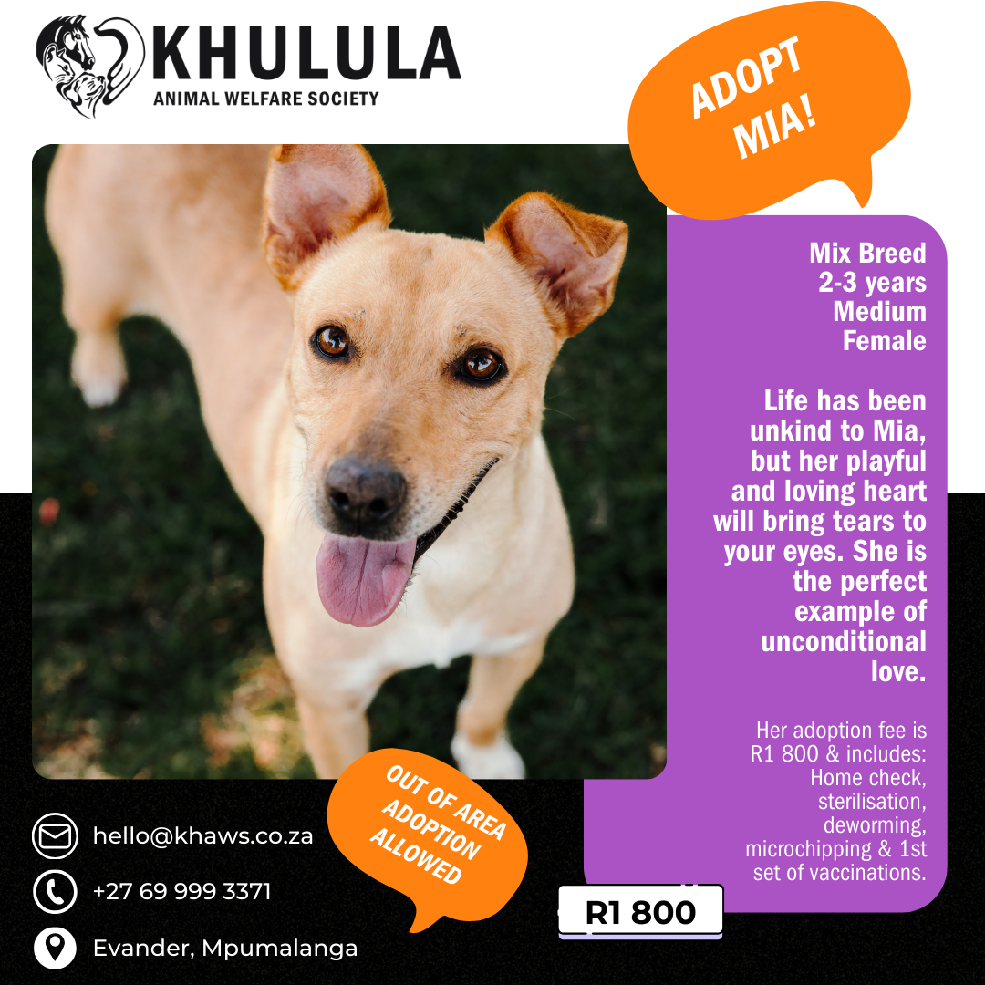 The following dogs are currently residents at Khulula Animal Welfare Society and are looking for their forever home.  Please contact us if you are interested in adopting.  Please be advised that home checks will be done, and 'meet and greets' must be held if you have other dogs.